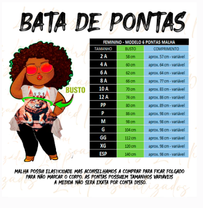 Escolha seu tamanho conforme orientações na tabela de medidas